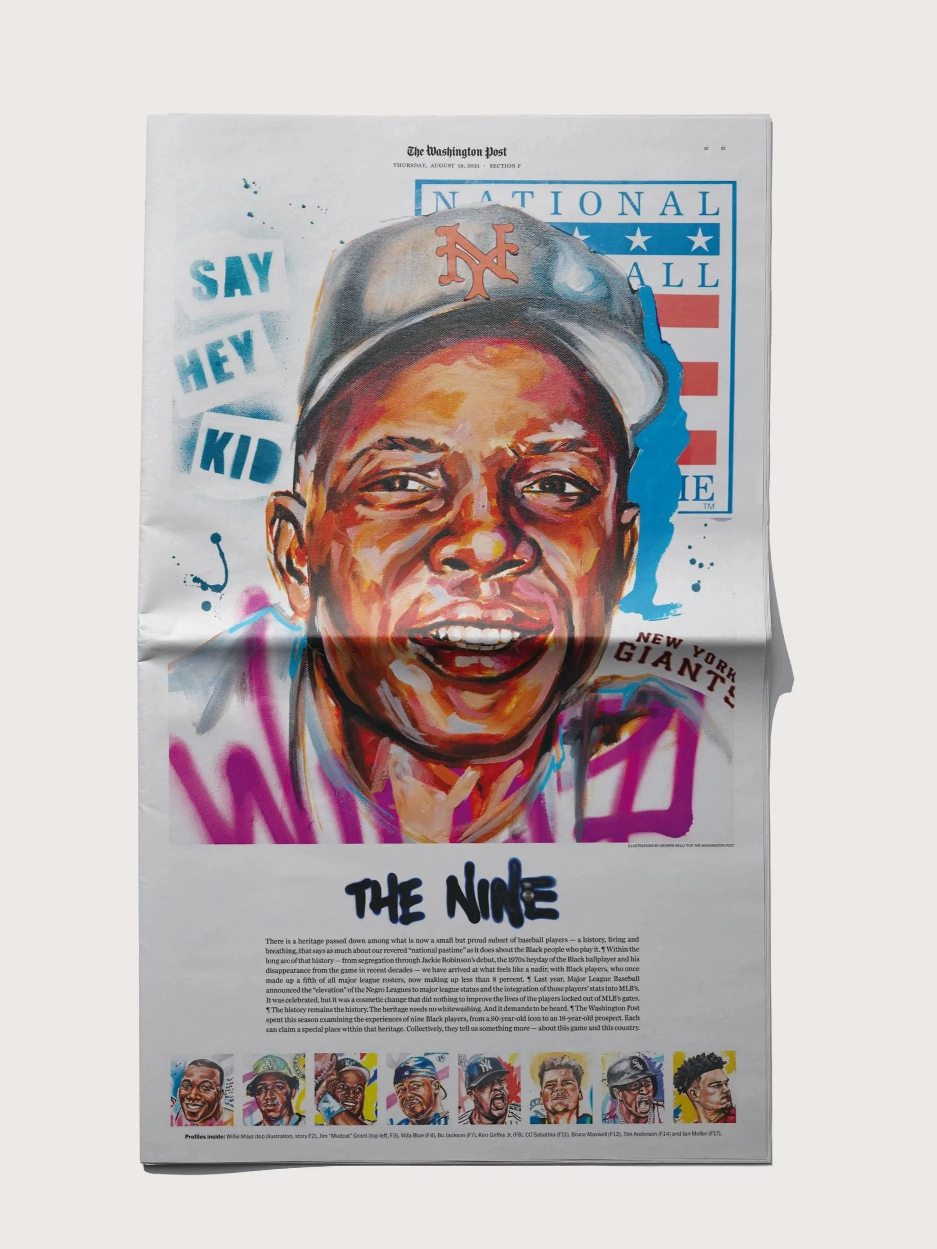I hired artist Desiree Kelly to make my vision for this story come to live. She painted nine mural-style illustrations for “The Nine” project.