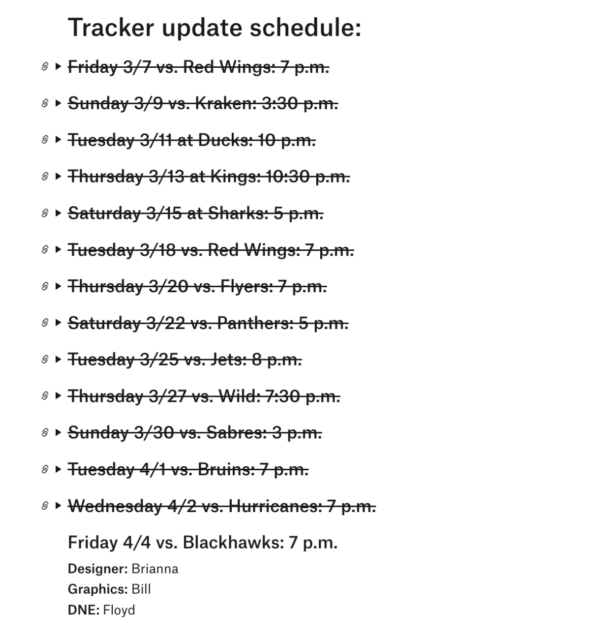 I reviewed and researched all of The Washington Post’s previous coverage of Alex Ovechkin and started brainstorming visual approaches for telling the story. After developing several mockups and presenting concepts to editors, we decided to combine two ideas — a goal tracker and a timeline highlighting our best Ovechkin coverage over the years — into a single experience rather than creating separate pages.